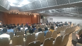 | 多くの参加者にご来場いただきました。 本校教員より、学校の概要や特徴、進路状況について、説明しました。 |