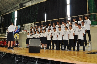 | トップバッターの緊張を振り払い、全力で歌ってくれました。 | 指揮者、伴奏、歌い手が一体となってのパフォーマンスでした。 | 生徒一人ひとりの息づかいまで、聞こえてきそうでした。 |