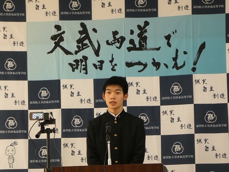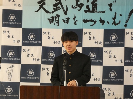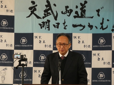 それでは、入学生の皆さんが、草津東高校生としての自覚と、自律ある高校生活のスタートを立派に切られることを祈念し、式辞といたします。