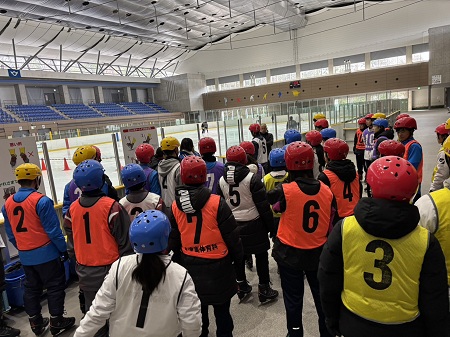 県立アイスアリーナにて、体育科1年生のスケート実習を行いました。ほとんどの生徒がスケート初体験でしたが、午前中はインストラクターの方に基本から丁寧に指導していただき、短時間で大きく上達する姿が見られました。午後からはフリー滑走を行い、それぞれが午前中に学んだことを実戦していました。