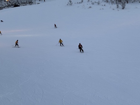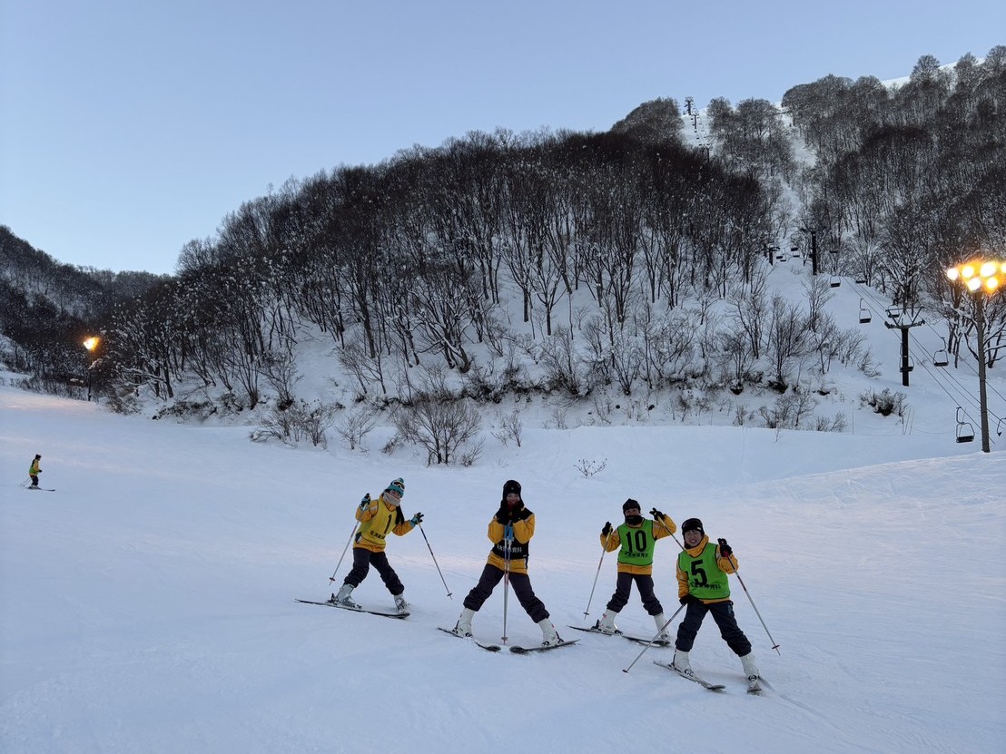 インストラクターの方から、基本的な滑走技術や姿勢などを自ら学ぶ姿勢をもち、取り組むことができました。また、リフトにも乗車し、さまざまなコースを経験しました。怖さもありましたが、それぞれ班ごとに声を掛け合い、実施できました。ナイター実習では、日中とは異なる幻想的なコースをフリーで滑走し、練習の成果を発揮することができました。 フリー滑走は、全員で楽しみながら実施することができました。3日目はさらなる上達のために、チャレンジしていきます!