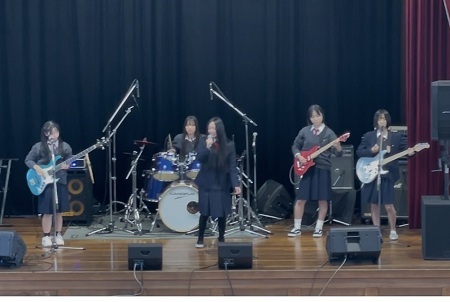 2年生3バンドがオリジナル曲で出場しました。各バンドでたくさん話し合い、歌詞やフレーズ、リズムと何度も修正しながら曲を仕上げていました。この大会の経験を活かして、さらに次の大会に向けて練習を始めています。【審査員特別賞】バンド名:MIRAGE オリジナル曲:『OWN WAY』