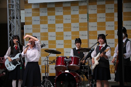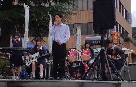 大津駅前公園にて、けいおんストリートLIVEが行われ、2年生5バンド、1年生3バンドが参加しました。1年生にとっては初めての学校外での演奏となりましたが、メンバーも観客も皆笑顔で楽しんでいました♪今後も1,2年生ともに多くのイベントへ参加していきます!