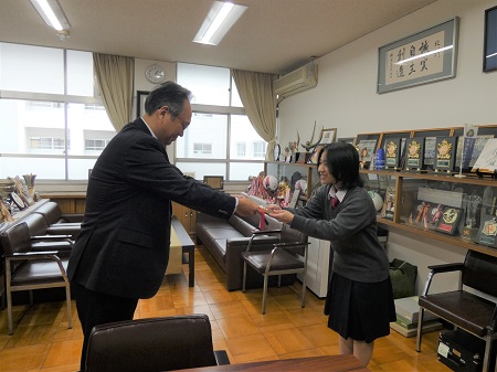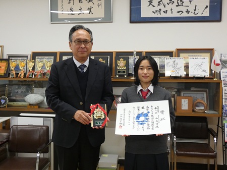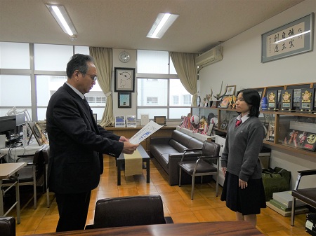 第46回滋賀県高等学校総合文化祭放送部門において、2年の西谷詩織さんが朗読部門第一位に入賞し、来年度の全国高等学校総合文化祭秋田大会への出場権を獲得しました。