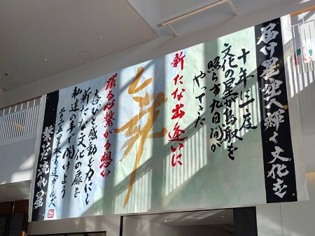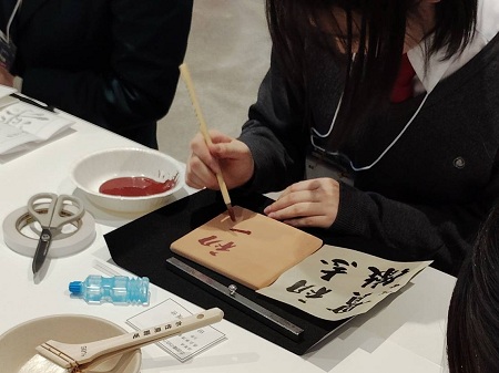 田井中暖世(3年)が11月22日(土)に鳥取県立美術館で行われた近畿高等学校総合文化祭書道部門に県代表の1人として参加しました。当日は、作品鑑賞をはじめ講師の先生による作品講評会、参加生徒による交流会が行われました。交流会では、「陶板に書を残そう」というテーマのもと作品制作が行われました。![]() |